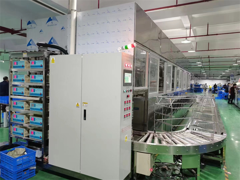 超聲波清洗設備多為箱槽結構,清洗槽大小決定單次清洗能力,可以根據(jù)被清洗零部件大小和數(shù)量選擇清洗槽清洗形式可以是單槽清洗,也可以是多槽清洗,單槽清洗即為零部件在一個清洗槽內(nèi)清洗完畢多槽清洗,是指將清洗過程分為多個工步,零部件從第一個槽清洗后,進人第二個槽繼續(xù)清洗,之后再進人第三個槽,第四個槽·····一般每個槽主要去除一種污染物清洗液需要根據(jù)零部件材料選擇,金屬材料常用的清洗液有汽油、酒精、水劑等,非金屬材料清洗液多為對零部件無損害的溶液單槽清洗時常選用汽油、酒精等揮發(fā)性溶液,溶液揮發(fā)性強化清洗效果;多槽清洗時,多選用水劑,主要考慮降低成本和提高安全性等因素不論是單槽清洗還是多槽清洗,隨著清洗過程的進行,溶液溫度會逐漸上升,同時也會導致被清洗零部件溫度上升,一般多槽清洗后溫度在45一55℃,單槽清洗后溫度在25~40℃兩種清洗方式都會伴隨出現(xiàn)“發(fā)泡”現(xiàn)象,發(fā)泡會增強去污力清洗前需要對零部件進行防護處理,保護被清洗零部件,清洗后對零件進行防銹處理,最后進行包裝。