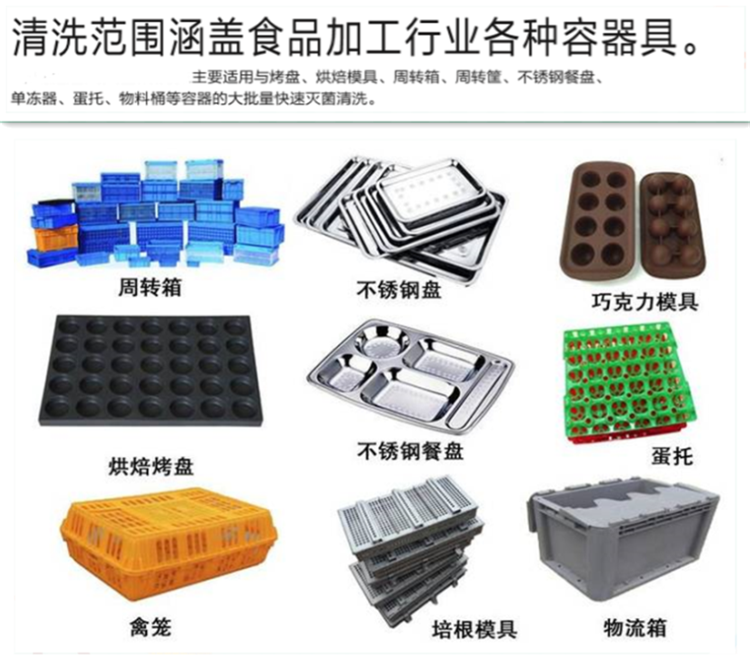6、 周轉箱高壓清洗機 網帶式膠箱自動除塵清洗機內置水位調節(jié)設施,節(jié)約用水;